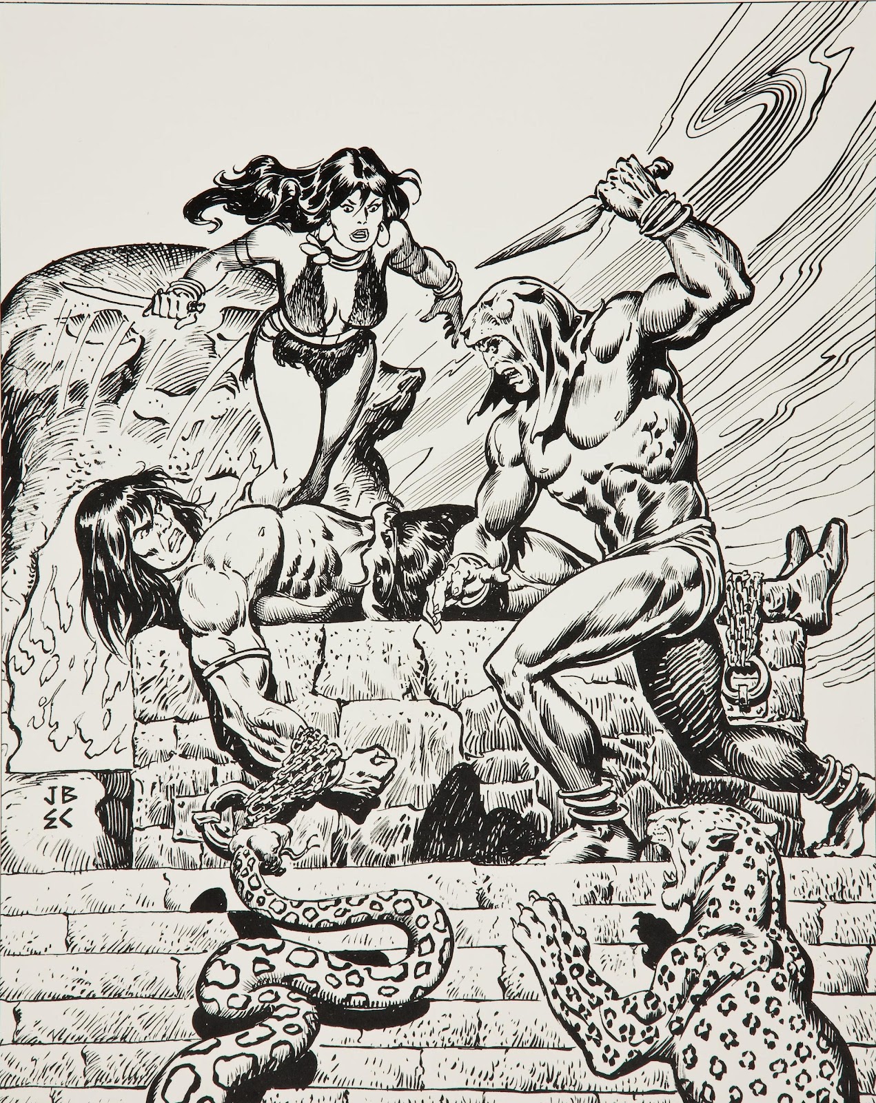 El arte de John Buscema marca de un modo definitivo la estética que sirve como escenario para estas aventuras. El paisaje gótico acentuado en la utilización del blanco y negro equivalente al enfrentamiento del bien –Arturo, Merlín y su corte- con el mal absoluto, demoníaco e infernal similar al de esos sacerdotes de las tierras extrañas por las que anduvo Conan el Cimmerio. A diferencia de lo que ocurre en la fantasía heroica, género al que pertenece buena parte de la producción de John Buscema en En busca del rey, el sortilegio es debido principalmente al engaño. La figura de Merlín es un tanto ambigua y corresponde al mito de su nacimiento, que lo hace hijo del diablo; en este sentido es muy significativa la escena en la que el Encantador se deja retar y acaba dando forma a monstruos de pesadilla que aterran a los mismos caballeros de la Tabla Redonda.