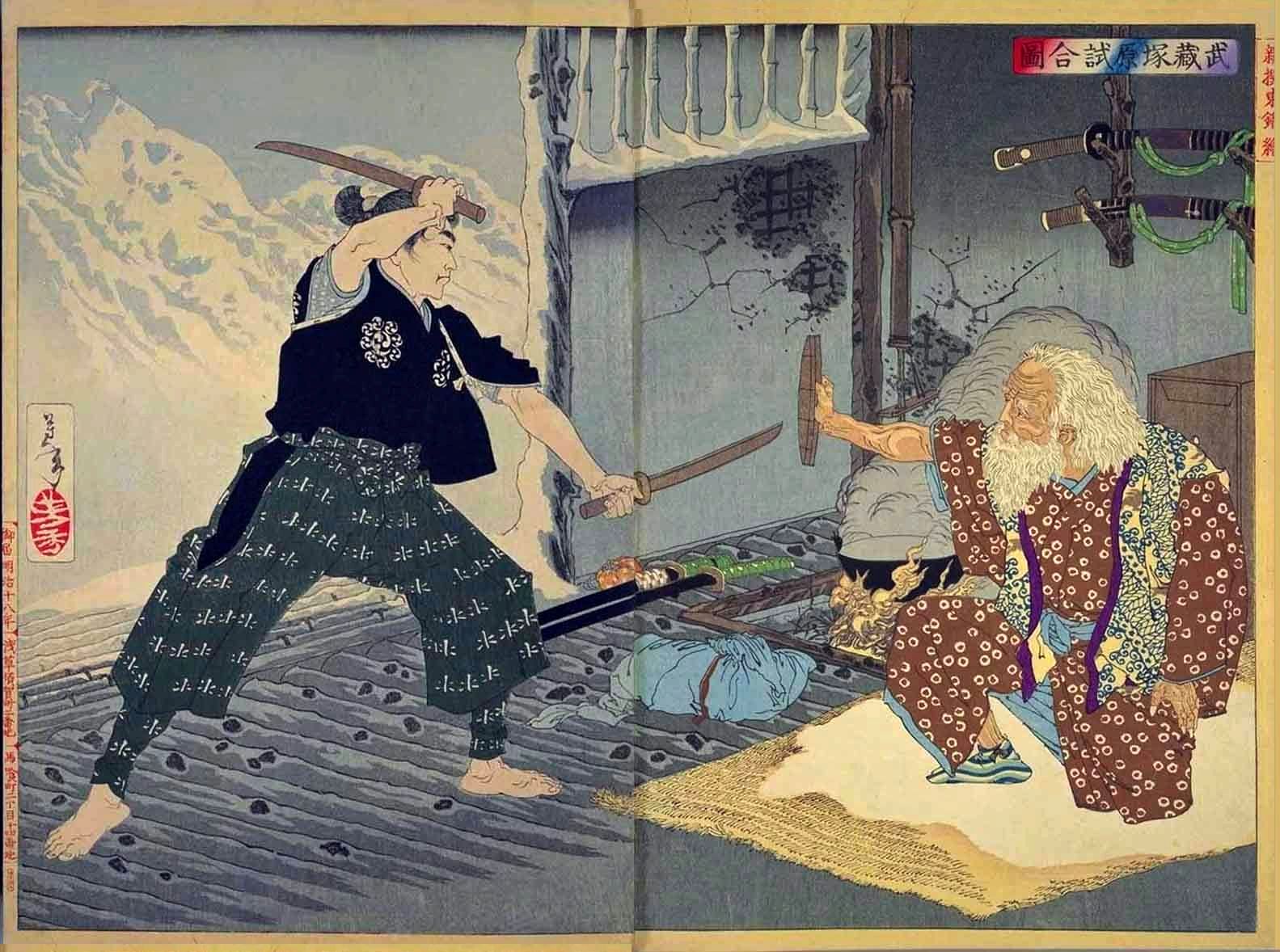Sin lugar a dudas, los puntos en común entre la esgrima japonesa y la práctica del zen son indiscutibles. Los ejemplos extraídos de la historia de los samuráis por Suzuki son muy numerosos, pero ahora nos interesan dos atribuidos a los grandes maestros Tsukahara Bokuden y Kami Idzumi Ise no Kami.