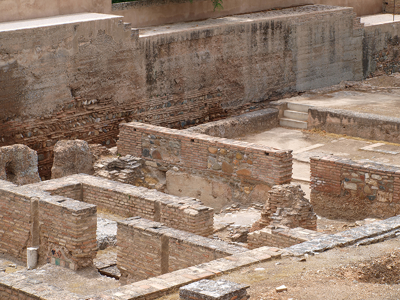 “Pasaron por aquel arco y entraron a un gran corral en que había unas fuentes de agua, cabe las cuales parecía que hubo grandes edificios que ya estaban derribados, y de las casas que alrededor hubo en otro tiempo, no aparecía de ellas sino tan solamente las paredes de canto que quedaban, que las aguas no habían podido gastarlas. Y así mismo hallaron entre aquellos casares cuevas muchas de las serpientes que allí se acogían”.