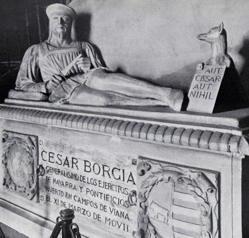 Observamos aquí dos intereses históricos que aparecen en diversos momentos de la obra de Álvaro Mutis: César Borgia, sobre el cual en Los Emisarios se contiene “Funeral en Viana”, también presente en un artículo publicado en la revista Novedades de México el 10 de mayo de 1980; la muerte del Duque de Valentinois es descrita así: “Acompañó a su cuñado en una expedición contra España y murió en Viana en una emboscada nocturna. Luchó como un león sin proferir una palabra. Acribillado por las lanzas enemigas, su cadáver fue recogido al día siguiente y recibió cristiana sepultura con los honores de un gran guerrero”.