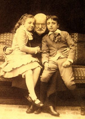 Victor Hugo (1802-1885) presenta en imprenta su libro L’Art d’être grand-père en 1877 (las citas de la obra provienen de la traducción española de 1888, muy acorde al sentimiento que movió al poeta francés), el mismo año de la segunda parte de La leyenda de los siglos, una interpretación de la historia del ser humano que, si bien se encamina hacia un futuro utópico, hace evidentes las desgracias y perversiones que han marcado su evolución. No está de más que recordemos algunas de las circunstancias vitales que enmarcan la composición de sus poemas, algunos de los cuales pueden fecharse en torno a 1872. En 1868 fallece su esposa, Adéle Foucher y en 1871, su hijo Charles. Otras de las muchas desgracias familiares que acompañan al autor a lo largo de su vida: su primogénito Léopold murió al poco de nacer (1823), su hija Léopoldine se ahogó a los 19 años (1843) con su marido en el Sena durante un paseo en barca –este suceso habría de marcar de un modo determinante la visión del poeta respecto a la existencia-; Charles falleció de tuberculosis, François-Victor de cáncer (1873), Adèle, hija, tuvo que ser ingresada en un sanatorio psiquiátrico, igual que le sucedió a Eugène, el hermano del escritor (1821). Toda una vida marcada por el hado de la muerte; luego recordaremos, muy resumida, su trayectoria política, también con sus sinsabores, que no fueron pocos. El caso es que, a la muerte de su hijo Charles, Victor Hugo se hace cargo de los hijos de este, Georges (nacido en 1868) y Jeanne (1869), con la nuera viuda. Los tres le acompañan al amargo exilio de 1872 a la isla de Guernesey, hasta que en 1874 se puedan instalar en París. De todo ello hay un eco en L’Art d’être grand-père.