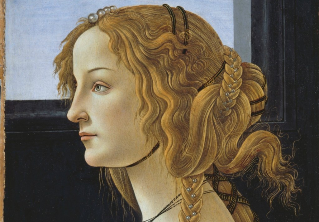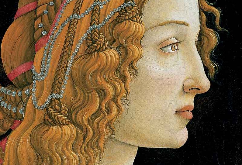 La descripción terminará en una alusión al cuello: blanco, enhiesto, el mismo que tiene Giovanna Tornabuoni en el retrato pintado por Domenico Ghirladaio. Un cuello que, en realidad, no tiene la misma importancia individualizada que el gesto, el mirar o el cabello. El cuello es un punto secundario en torno al cual el viento “mueve, esparce y desordena” el cabello, como sucede en El nacimiento de Venus de Sandro Botticelli.