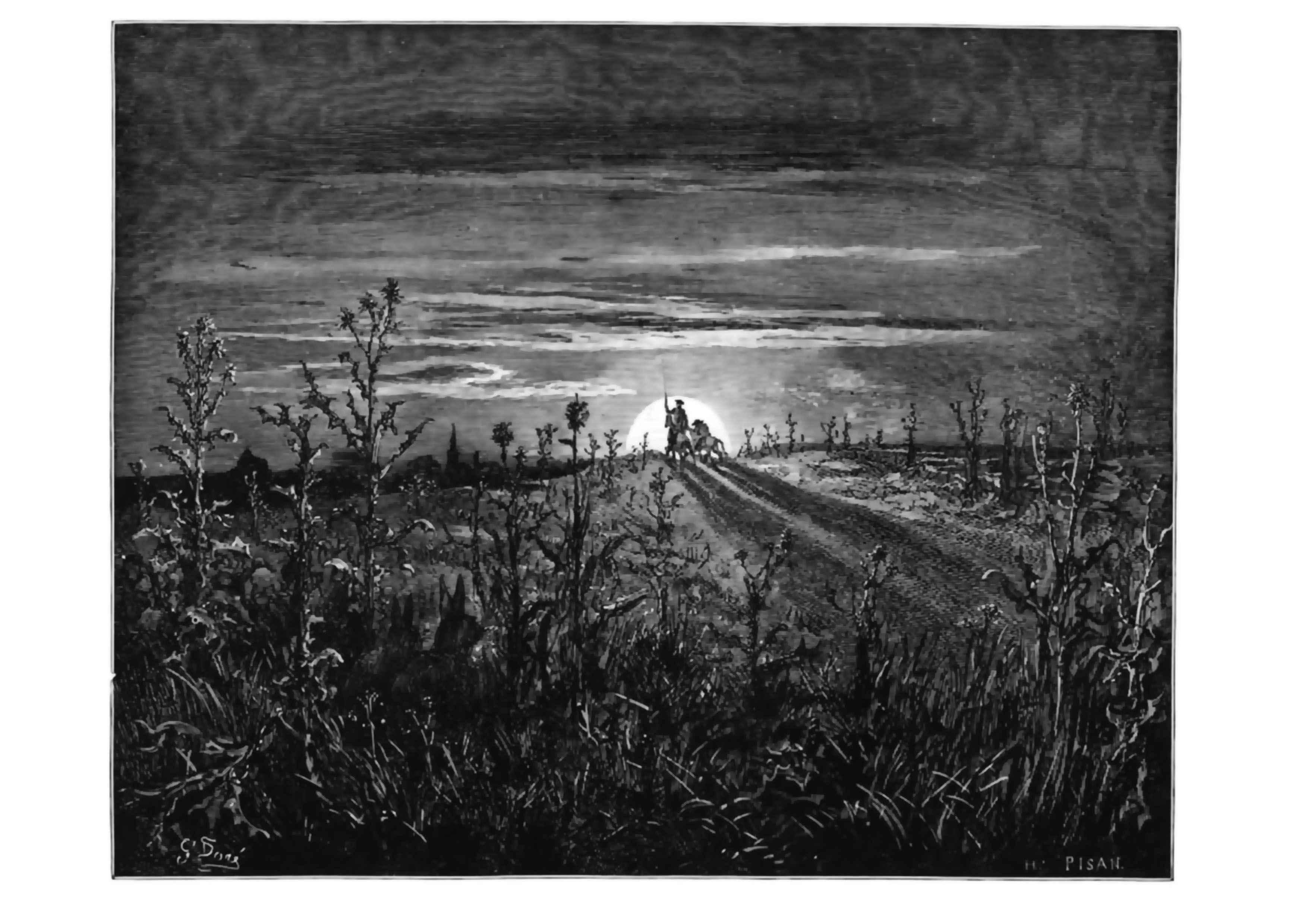 “<Libertad e soltura non es por oro comprada>, dijo don Quijote; y dando de espuelas a su caballo, salió del camino por ser de la caballería no seguirlo siempre, sino al contrario, ir por lugares sin senda, por despoblados, montes y valles obscuros, donde suelen toparse doncellas andantes, jayanes, enanos, moros encantados y malandrines, a quienes despanzurrar en un santiamén. <Esto de salir uno cuando le viene en voluntad, amigo Sancho, entrar cuando está cansado, ponerse de nuevo en movimiento, ir y venir sin dar cuenta de sus acciones a nadie, es gran cosa para el hombre que gusta de gobernarse a sí mismo. Pregúntame cuál es el mayor de los males, y me oirás responderte, el cautiverio. ¿Cuál el más infeliz de los nacidos? El esclavo, el preso. La flor del viento, la luz matinal tomada en la campiña, son manjares que el alma saborea con ahínco, y hasta la verdura de los prados, la oscuridad de los montes lejanos contienen un delicioso alimento para el espíritu y el corazón del hombre que puede gozarlos seguramente y libremente. Estos bienes son de aquellos cuyo precio no conocemos sino cuando por desgracia los venimos a perderles; si te supones metido en un calabozo, privado del sol y el aire, verás que el ir por estos campos, libre y sin cautela, caballero en tu jumento, es para ti la tierra prometida. … Puedo seguir el camino, pero conviene más a las armas ir fuera de él; puedo dormir bajo tejado, mas el cielo raso con su alta y anchurosa bóveda es el abrigo natural de los aventureros>” (Capítulos 294)