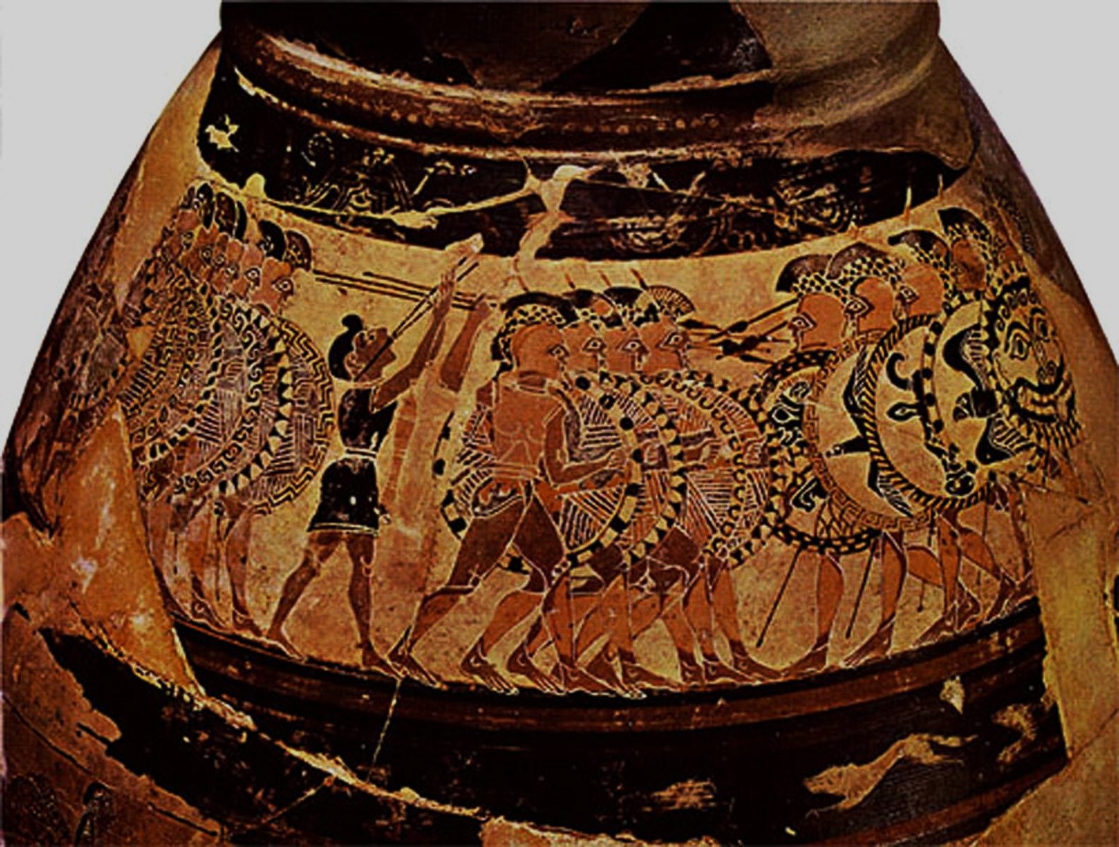 En la sociedad espartana, las madres o las esposas despedían a sus guerreros con unas palabras similares a estas: “Vuelve con tu escudo o sobre él”, porque esta arma defensiva era tan pesada que sólo podía utilizarse para avanzar o para portar el cuerpo del que había fallecido en combate. Un consejo similar es el que utiliza Tirteo en su arenga: “no empecéis la huida” o “no huyáis dejándolos a ellos atrás”.