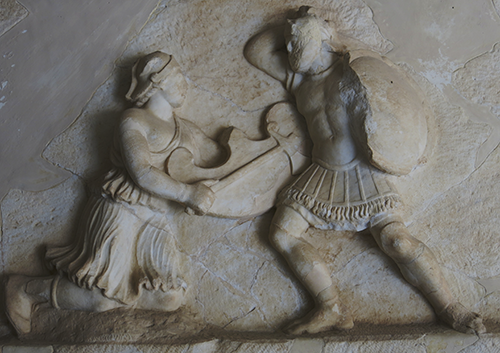 Buena parte de lo escrito para el comentario anterior es perfectamente aplicable a estos versos, también pertenecientes a Tirteo. En ellos, nuevamente, es el mundo de la guerra el tema central.