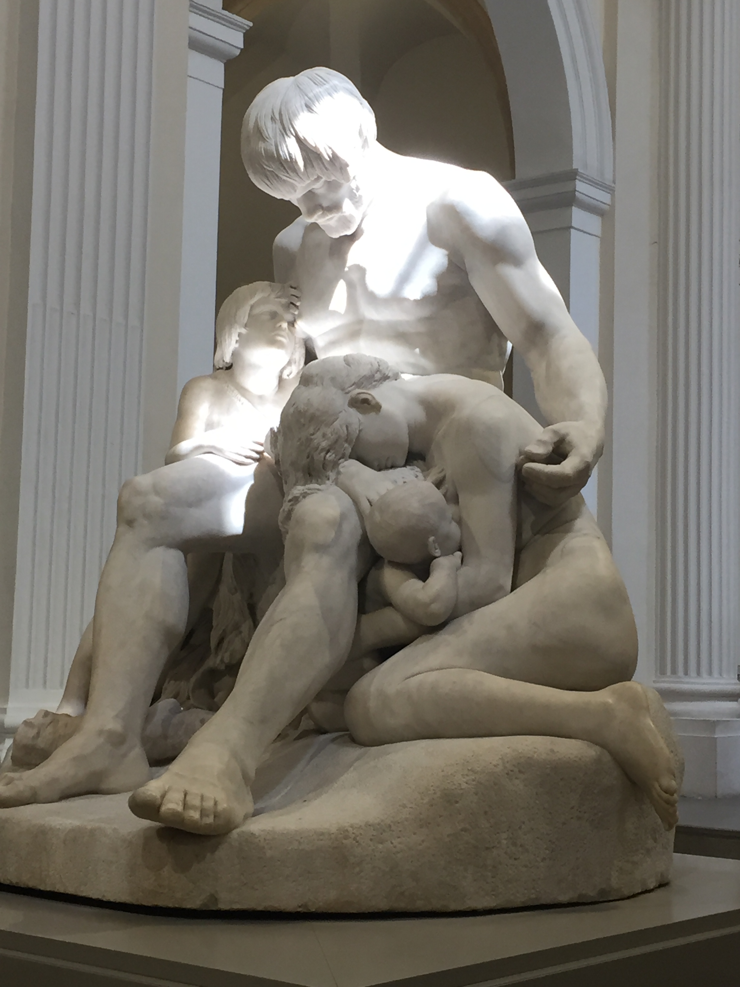 Afrontando a la ciudad se encuentra un pequeño camposanto que parece provenir de tiempos antiguos pues está formado por tumbas viejas, en silencio obstinado con piedras renegridas, polvorientas y teñidas con color de corazón; se trata de un pozo de muertos con una iglesita de juguete en la cual unas campanas sueñan, duermen, permanecen en ese silencio que vuelve trascendental este espacio contrapuesto al ruido de una ciudad inhumana, más que el cementerio en el cual habitan los muertos entre hierba agriverde y una florecita roja. Tanto es así esto último que lo apartado no es el camposanto viejo, sino la ciudad desterrada en la que no hay vida, pues no está en ella la posibilidad de eternidad y belleza.