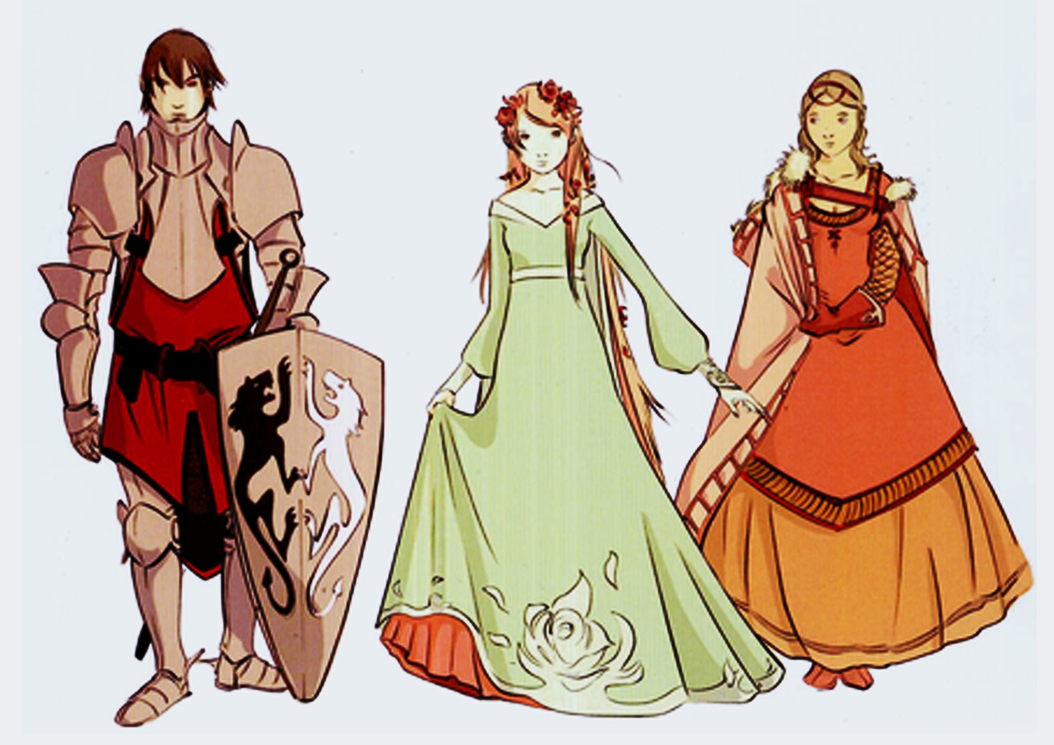 Hay una serie de personajes fundamentales en el mundo mítico de los libros de caballerías. En primer lugar, los héroes que en el Amadís, tal y como es interpretado por Emma Ríos, son dos: Amadís de Gaula y su hermano Galaor. Ambos son representados a la manera tradicional, como corresponde a la categorización del héroe épico en el manga. No hay, prácticamente, voluntad de arqueologismo por parte de la autora a la hora de recrear a estos personajes; prima el interés por plantear la idiosincrasia propia del héroe caballeresco: valor, fuerza, ternura cuando está cerca de la amada, y una expresión terrible cuando las circunstancias lo exigen. Quizá el momento más destacado de todo esto lo podamos encontrar en la representación de Amadís como Beltenebros. Se ha convertido en un bello tenebroso, sus ropas oscuras, la melena tapándole prácticamente el rostro. El enfrentamiento salvaje de Beltenebros contra el Endriago, es la única posibilidad gráfica de representar las emociones que Amadís siente en ese instante tan cercano a la muerte.
